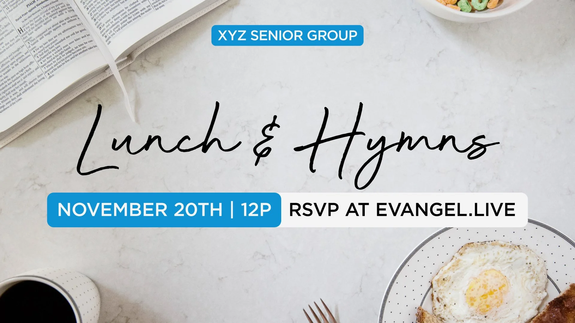 Join us on the third Thursday of each month for a time of hymns, bible study, a delicious lunch and a chance to connect in community with senior saints (55+). Lunch will cost $12 and an RSVP is required so we know how many are coming. The fun begins at 12P in room 225.