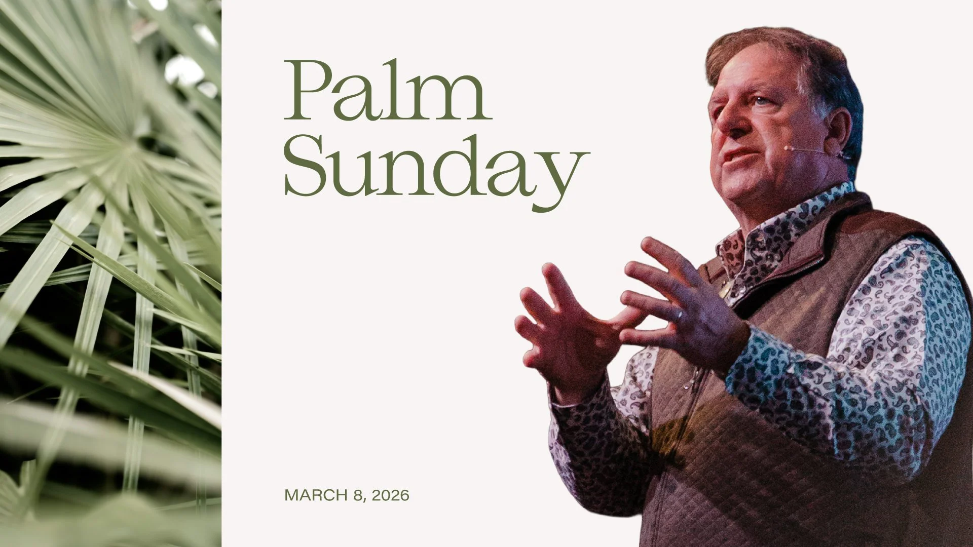 Palm Sunday Palm SundayPastor Paul ThomasPastor PaulPaul Thomas Mar 30 Written By Zac Cain March 29, 2026 Zac Cain